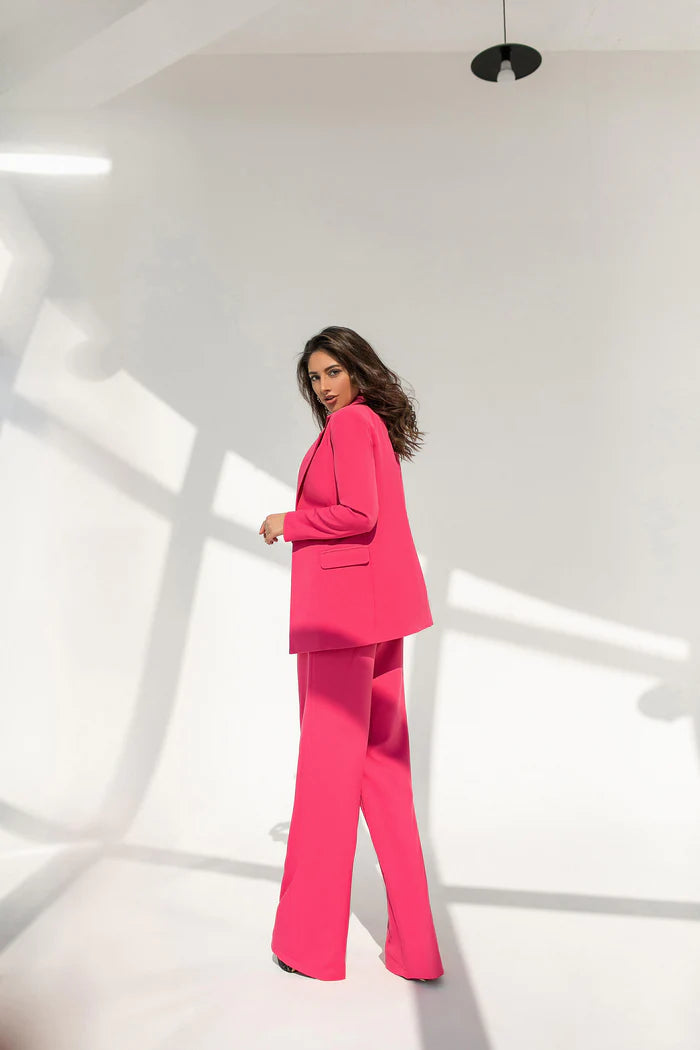 - Wide-leg pants with double breasted blazer