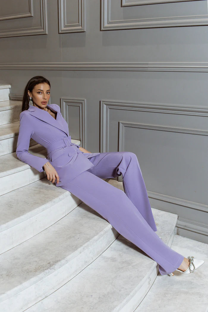 - contains- blazer pants and belt
